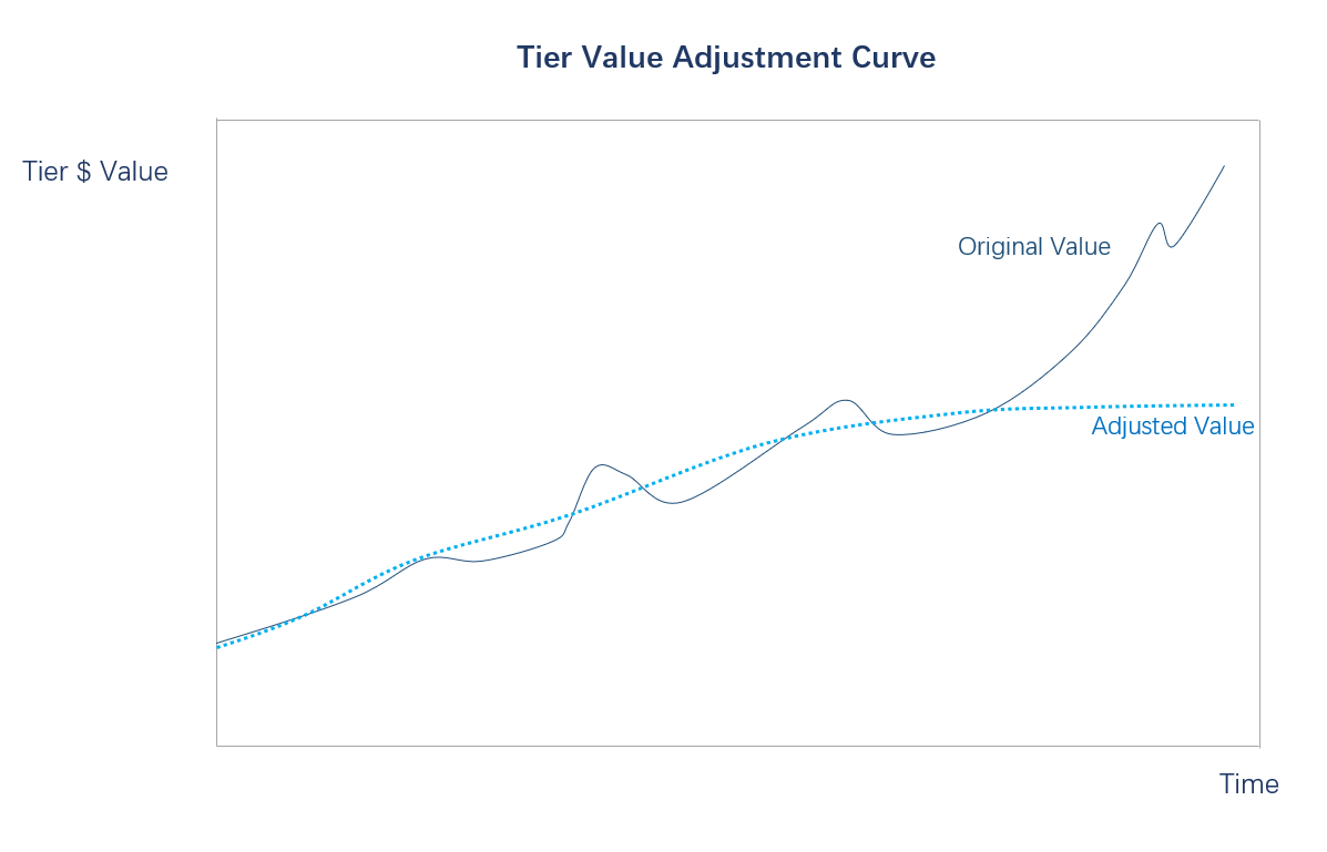 Naturally, past a **certain inflection point**, for any particular tier due to the growth of token value becomes unaffordable for more users and only affordable for a smaller demographic. This is normal as this fulfills our self-preserving principle in that the barrier of entry to later participants will be higher and less will be able to access.