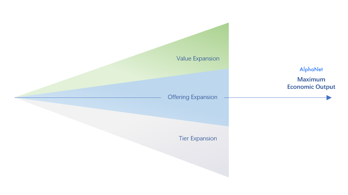 In the ongoing process of growing maximum economic output of AlphaNet, there’s 3 aspects of continuous expansion of the platform: